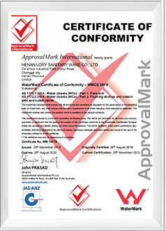 Lory Sanitary Ware's products have passed ISO9001 quality management system certification, CE, SGS, KS, etc.